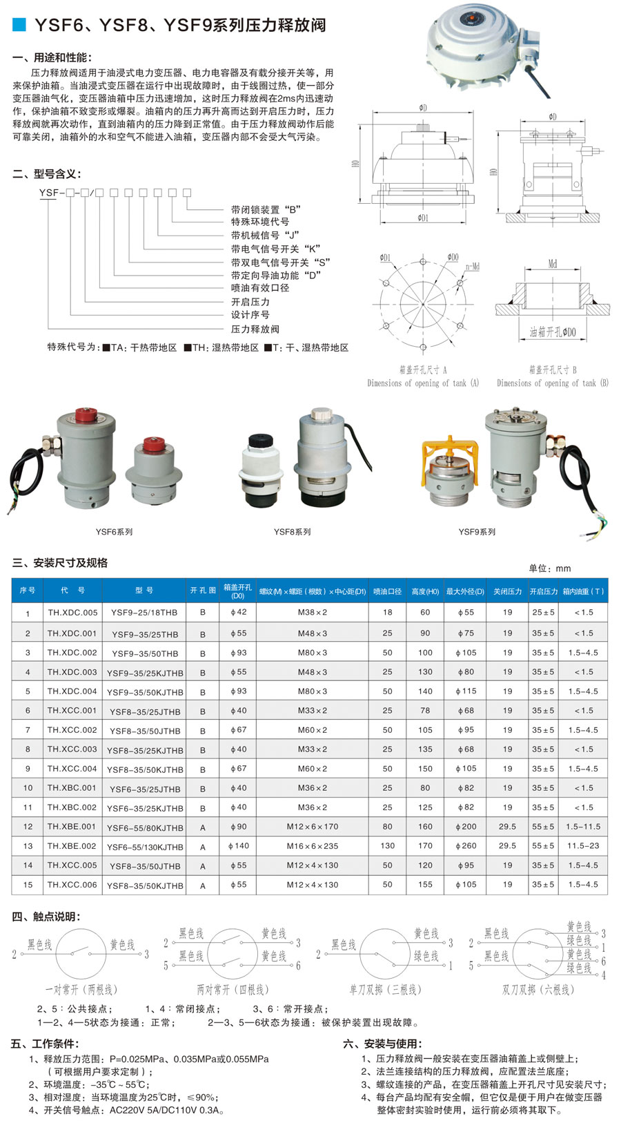 YSF6 YSF8 YSF9 series pressure relief valves