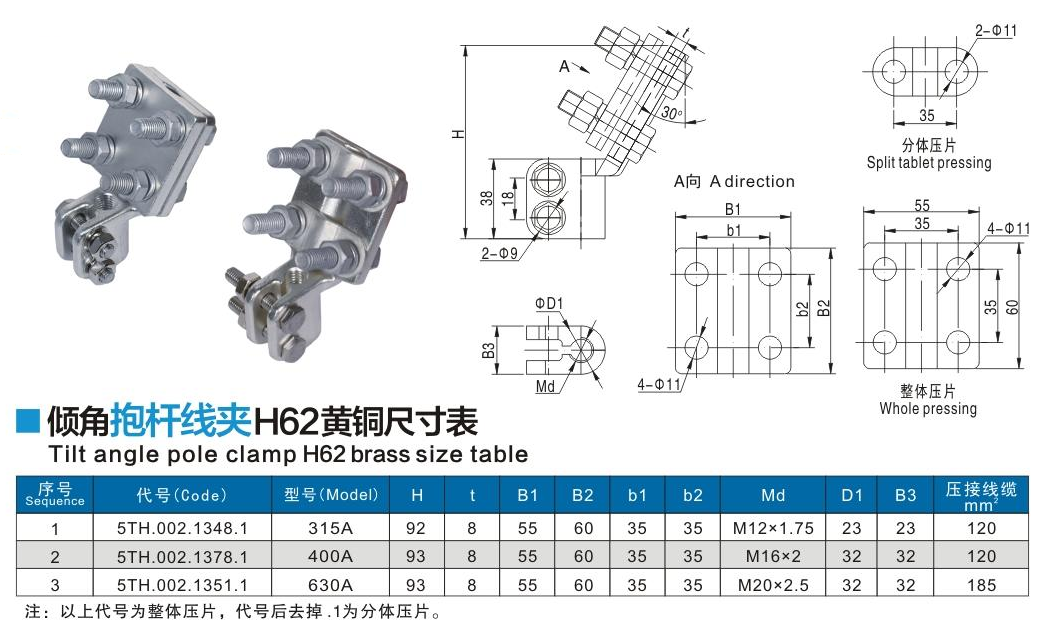 傾角抱桿線夾H62黃銅