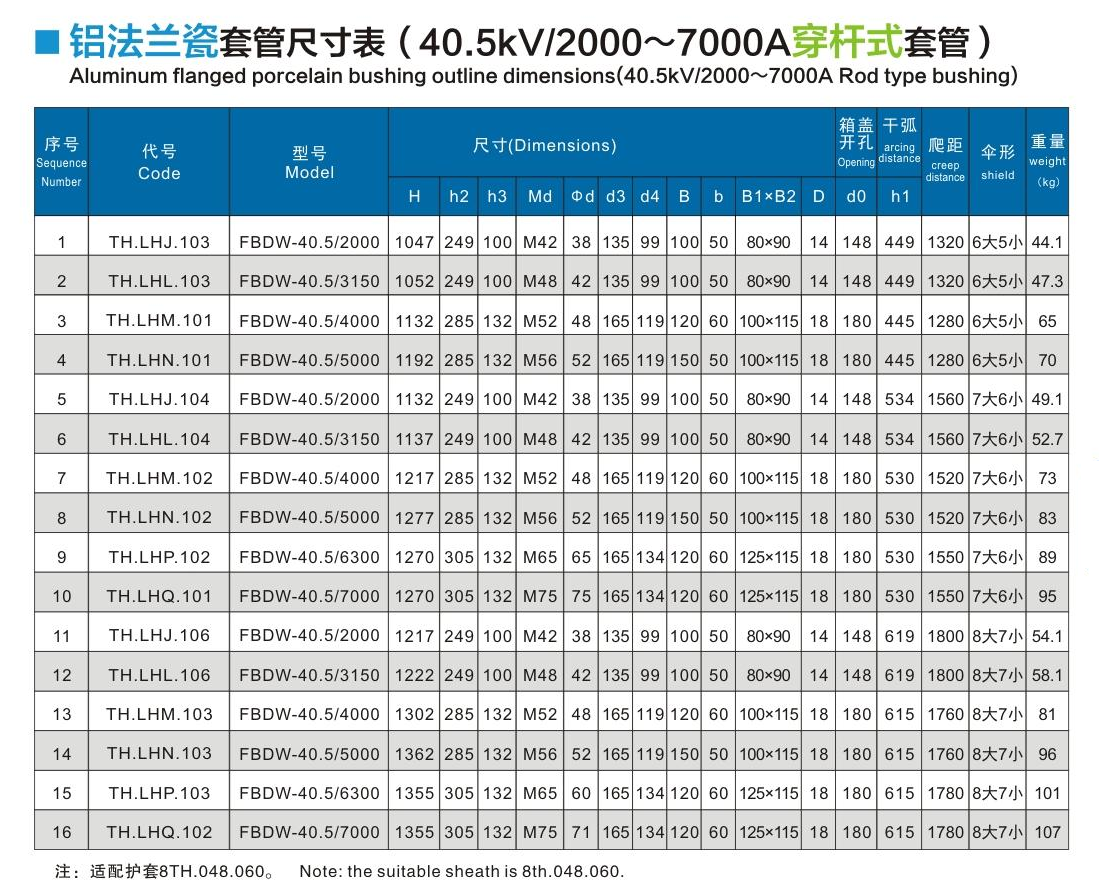 鋁法蘭瓷套管40.5kV/2000~7000A穿桿式套管