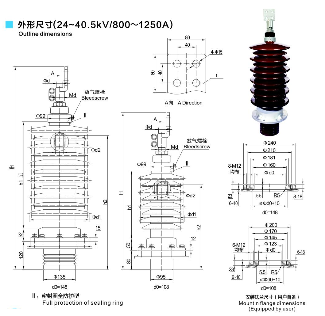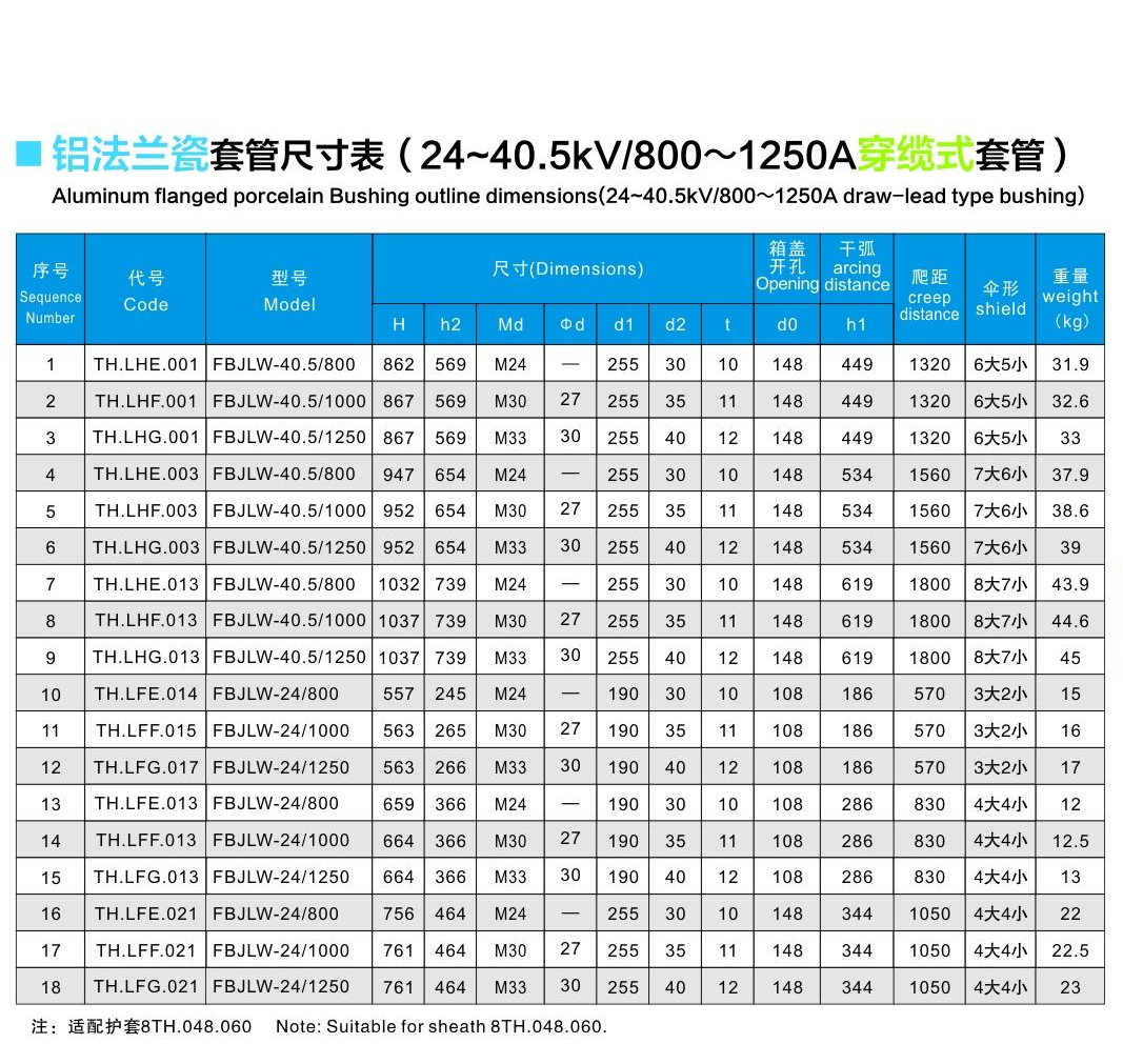 鋁法蘭瓷套管24~40.5kV/800~1250A穿纜式套管