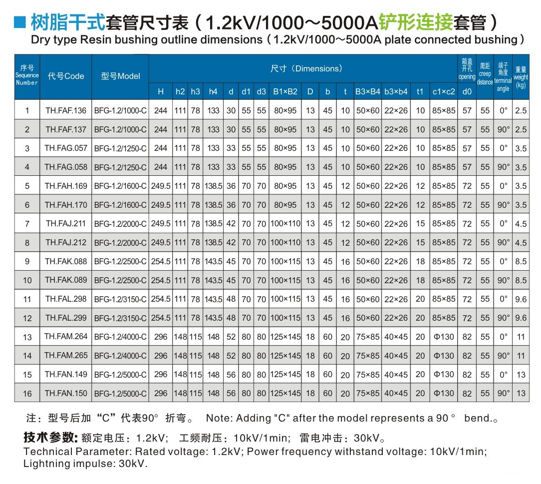 樹脂干式套管1.2kV/1000~5000A鏟形連接