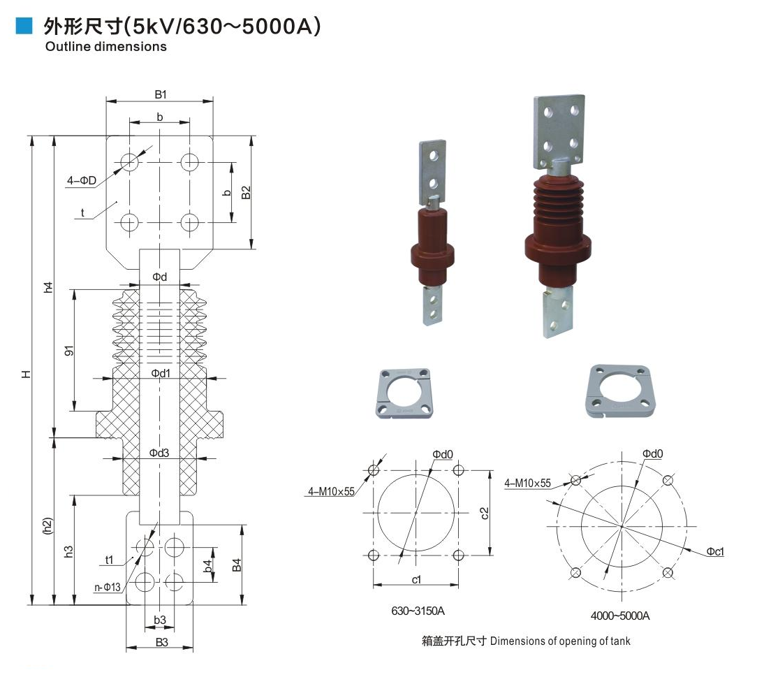 樹脂干式套管5kV/630~5000A鏟形連接套管