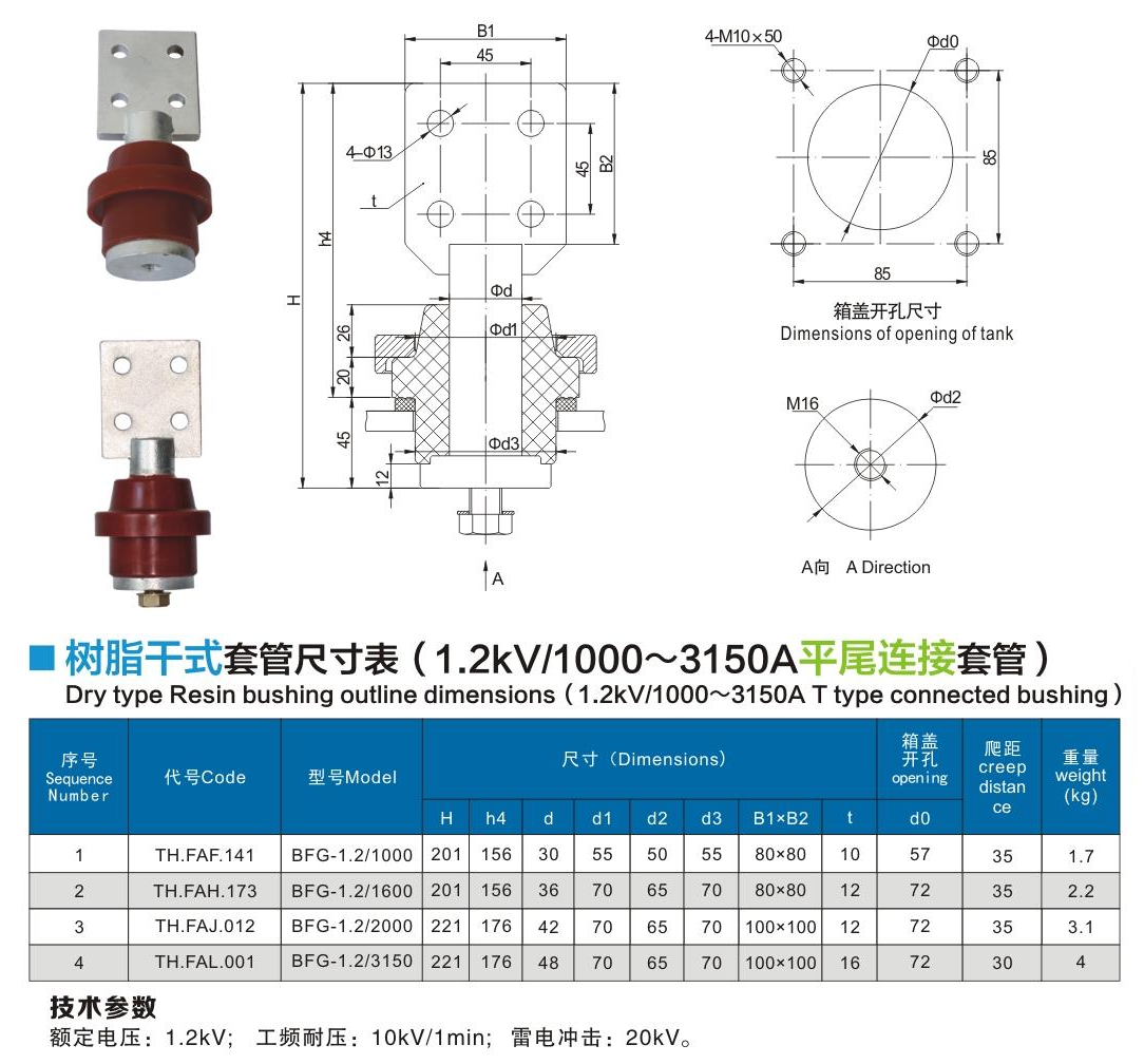 樹脂干式套管1.2kV/1000~3150A平尾連接套管
