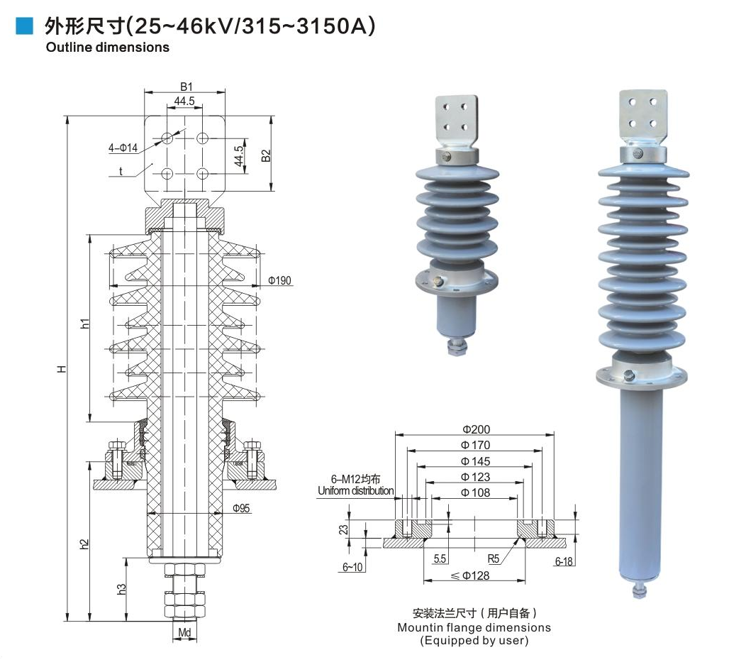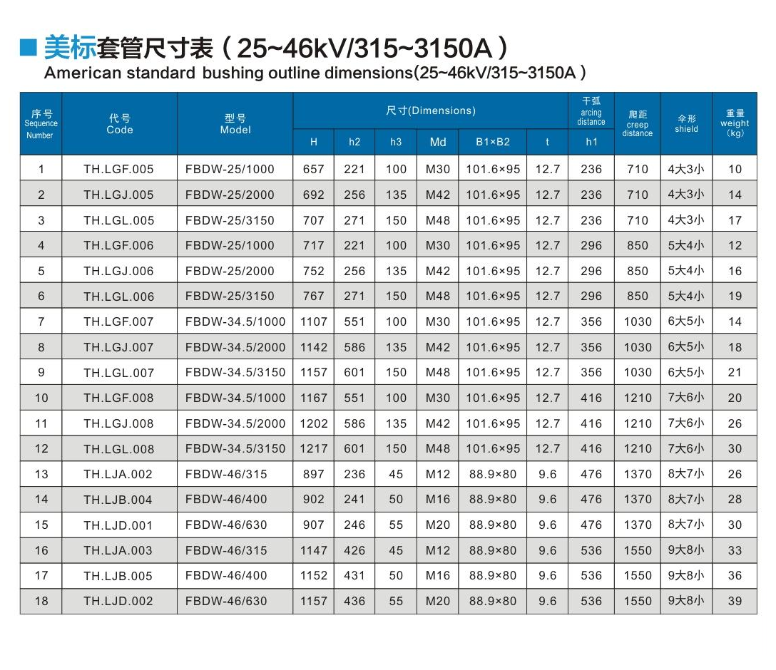 美標(biāo)套管25~46kV/315~3150A
