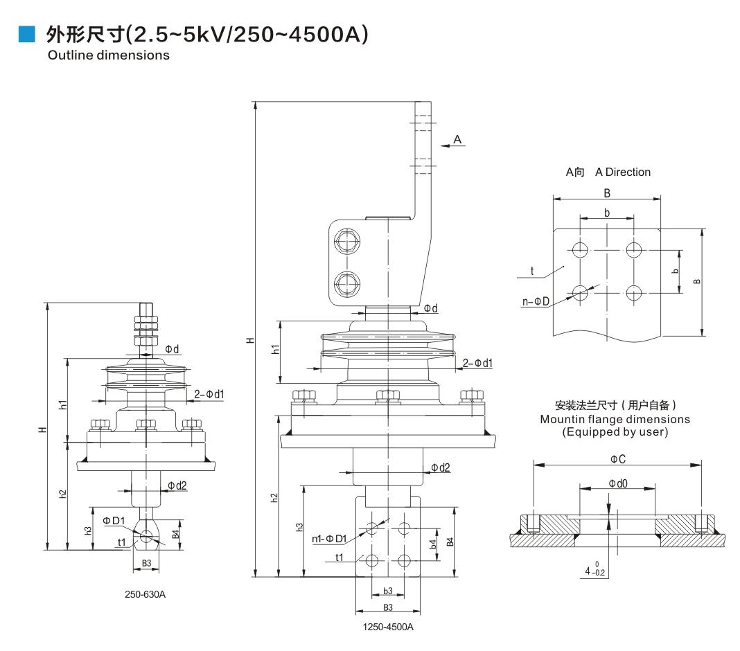 鋁法蘭硅橡膠套管2.5~5kV/250~4500A