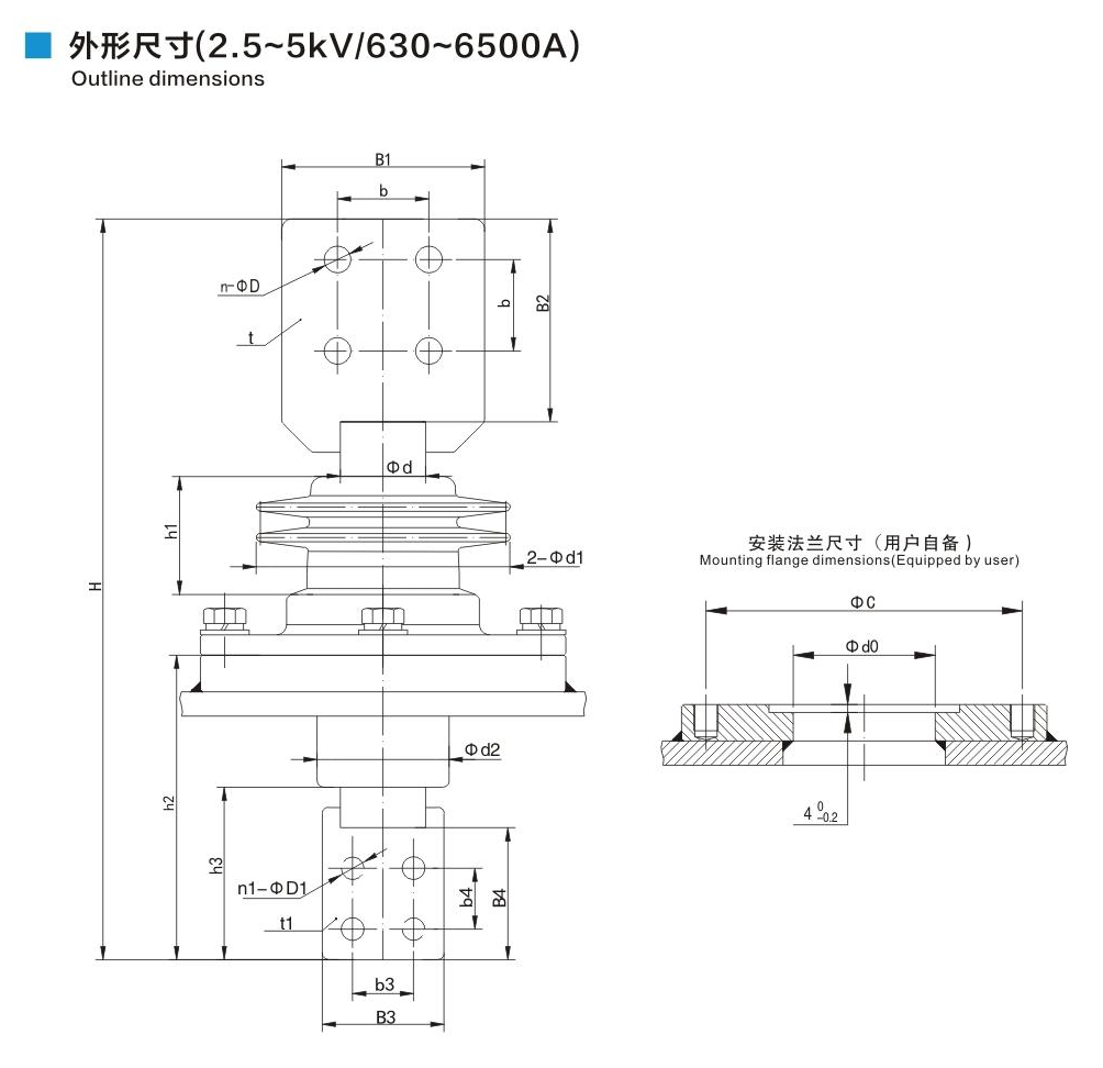 鋁法蘭硅橡膠套管2.5~5kV/630~6500A